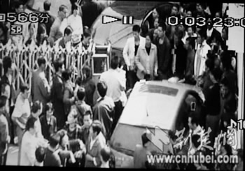 9時(shí)30分許,該局的正常辦公,突然被門(mén)前的吵鬧聲打破了!爱(dāng)時(shí),公安局大院的出入口伸縮門(mén)打開(kāi)有一個(gè)多車(chē)道,突然一輛掛著白花的藍(lán)色轎車(chē),很快就沖進(jìn)了公安局大院!惫簿55歲的當(dāng)值保安劉神寶回憶說(shuō),他發(fā)現(xiàn)有人開(kāi)車(chē)進(jìn)入公安局后,馬上走出門(mén)衛(wèi)室進(jìn)行制止,并要求司機(jī)把車(chē)開(kāi)出去。這時(shí),車(chē)上下來(lái)一人大叫:“人都死了,還不能把車(chē)開(kāi)進(jìn)來(lái)?”