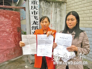“任勞任怨給公司干了10多年,沒想到竟遭老板暗算——廠里給我們集體放假,結(jié)果一個(gè)月沒等到復(fù)工消息,卻收到一份曠工被解雇的通知,還不給一分錢補(bǔ)償。”昨日,遭遇此事的重慶市飛龍紙業(yè)有限公司(以下簡(jiǎn)稱飛龍紙業(yè))老員工董運(yùn)梅、李興碧,對(duì)這一結(jié)果表示很寒心,一定要向單位討個(gè)說法。