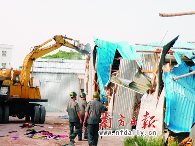 昨日,在繼近兩年來近百次的打擊走私舊服裝的行動后,陸豐市出動800多公安、工商、城管等警力、人力,對位于碣石鎮(zhèn)新繞村的“洋垃圾”窩藏點的288間鐵皮房進行定點清除。
