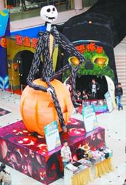 沈陽中街的一個(gè)大型商場,“鬼怪”儼然變成促銷手段,“恐怖屋”、“整蠱屋”、“挑戰(zhàn)僵尸競技場”悉數(shù)亮相。記者看到,促銷員都身著長及腳面的黑袍,從脖子到小腿處是一副完整的白骨圖案。冷不防一看,挺嚇人的。