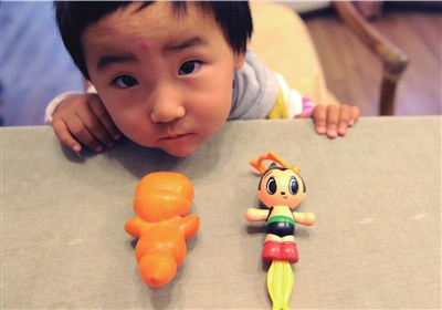 據(jù)楊女士介紹,上周末,她帶著2歲的女兒家奕到農(nóng)村去采摘,“孩子牙還沒長(zhǎng)齊,正好喂軟柿子吃”。在柿農(nóng)為其采摘時(shí),家奕在一旁往樹上看,“她用手指著,嘴里嘟囔著什么!边@個(gè)柿子被摘下來,柿農(nóng)說它像人參果,就把它送給了家奕。“回來的路上,家奕就一直在玩那個(gè)柿子,嘴里還是嘟囔著。”回到家,家奕拿出“鐵臂阿童木”的玩偶,楊女士才知道,原來,家奕一直在說那個(gè)柿子像“阿童木”。楊女士說,“這個(gè)‘柿子阿童木’都已經(jīng)軟了,但是,如果放進(jìn)冰箱凍起來,家奕玩不到就會(huì)哭的。” (實(shí)習(xí)記者李川)