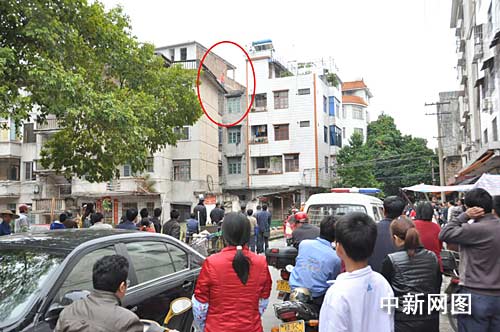 現(xiàn)場群眾說,該男子大概是中午12點左右上到樓頂,剛開始還以為是宿舍樓的住客,后來看到男子坐在樓頂邊緣將手機、錢包還有一張紙條丟到樓下馬路。