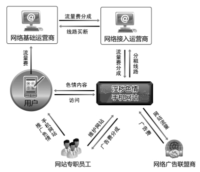 公安部門相關(guān)人士表示,基礎(chǔ)運營商也是“手機色情”網(wǎng)站的重要受益者。按照目前的運營體制,手機瀏覽色情網(wǎng)站產(chǎn)生的費用將首先上繳給基礎(chǔ)運營商,再由基礎(chǔ)運營商按比例給下線承包商分成。這意味著,流量越大,受益越高。