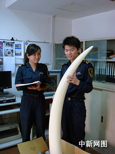據(jù)透露,2009年10月26日,上海海關(guān)駐郵局辦事處關(guān)員小郭依照慣例對進(jìn)口郵件的申報(bào)單進(jìn)行審核。審單過程中,一件由日本郵寄進(jìn)境、申報(bào)內(nèi)容為“非洲特色裝飾品,工藝品”的單子引起了她的注意。原來今年6月,海關(guān)就曾查獲一批由烏拉圭進(jìn)境的象牙雕刻制品,其收件地址與這票貨物完全相同!小郭于是立即對可疑郵包進(jìn)行了機(jī)檢。X光機(jī)下,關(guān)員觀察到一個(gè)類似象牙弧形狀的深色物體,打開扁長方形的盒狀包裹,關(guān)員發(fā)現(xiàn)里面塞有大量的報(bào)紙,報(bào)紙堆中藏有一根通體玉白,實(shí)心、表面微亮、未經(jīng)雕琢的象牙。