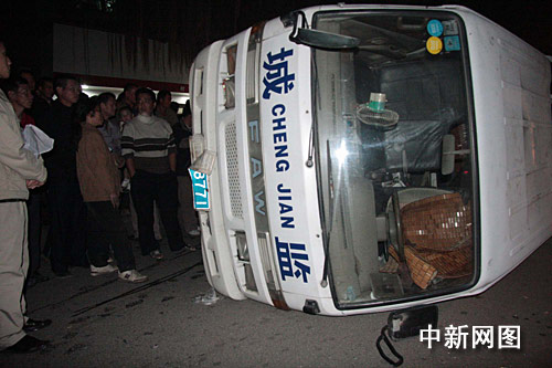 中新網(wǎng)南寧11月25日電 (記者 王剛)廣西梧州市有關(guān)部門(mén)今天向中新網(wǎng)記者證實(shí),昨晚10時(shí)許,該市幾名城管在執(zhí)法時(shí)與攤販發(fā)生糾紛,引來(lái)眾人圍觀,過(guò)程中城管執(zhí)法車(chē)被推翻。