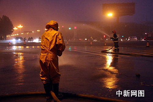 據(jù)悉,事發(fā)現(xiàn)場位于許昌市城市主干道,當(dāng)時(shí)又適逢下班高峰期,過往車輛、行人特別多。為安全起見,消防官兵和交警在事發(fā)現(xiàn)場500米范圍內(nèi)拉起警戒線,嚴(yán)禁使用手機(jī)和有明火產(chǎn)生,同時(shí)交警部門對蓮城大道和魏文路進(jìn)行了臨時(shí)雙向交通管制,禁止一切無關(guān)人員和車輛通行。根據(jù)現(xiàn)場情況,消防官兵迅速用兩個(gè)消防開花水槍和一個(gè)消防水炮造出三道大水幕,阻隔天然氣向周圍繼續(xù)擴(kuò)散,并向泄漏的路面處進(jìn)行噴淋。