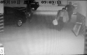 2009年5月18日9時3分,拎著狗糧的鐘益師,剛剛進入自家地下車庫,兩名男子從水泥柱后方依次出現(xiàn)。第一名男子用繩索套住鐘益師頸部,后者則在鐘回頭瞬間,用腳將其踢倒。