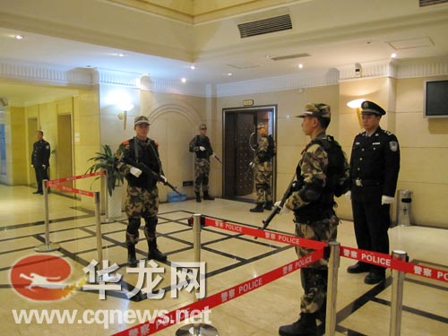 記者在法院現(xiàn)場看到,此次庭審安檢非常嚴(yán)格,總共有三道防線。第一道在在法院周邊50米左右,有交警戒嚴(yán),社會車輛一律不得進(jìn)入。第二道在法院樓下,已拉起警戒線,旁聽群眾、記者、律師等必須持有旁聽證或相關(guān)證件才能入內(nèi)。第三道線在進(jìn)入法院時,所有人員必須接受安檢,手提包全部寄存,手機(jī)、筆記本、相機(jī)等隨身物品均不得帶入法庭內(nèi)。法院大門外和法庭門外均有特警持槍站崗,進(jìn)入法院大樓內(nèi)手機(jī)信號將會被屏蔽。