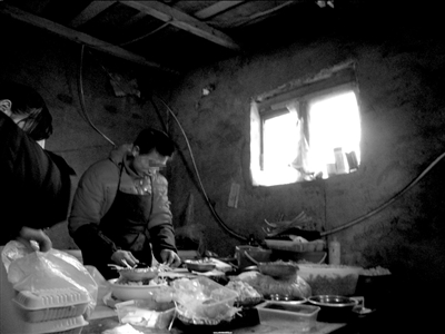 連日來(lái),記者根據(jù)外出送餐伙計(jì)的行蹤,在呼家樓地帶的化石營(yíng)2號(hào)院、新街大院的胡同內(nèi)等地,共發(fā)現(xiàn)近10家送快餐加工點(diǎn)。它們多是緊挨樓房的磚砌小窩棚,室內(nèi)外臟亂不堪,飲食衛(wèi)生難以得到保障。