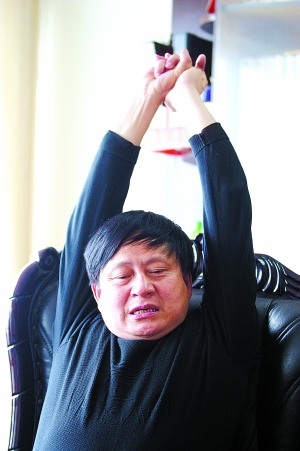 去年12月20日,北京一家賓館內(nèi),周立太撩起保暖內(nèi)衣,晨光通過(guò)窗戶,射在圓滾滾的肚子上。