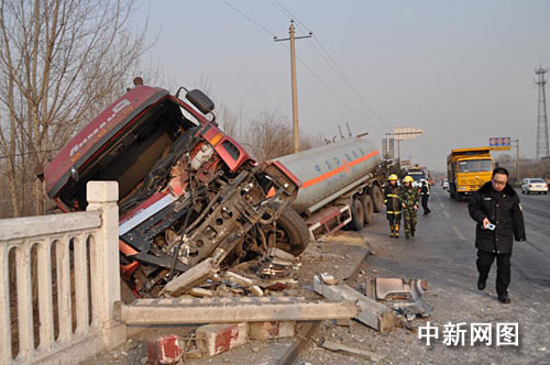 中新網(wǎng)洛陽1月27日電 (記者 李金輝 通訊員 王力)1月26日下午15時許,在洛陽市新安縣310國道磁澗鎮(zhèn)磁澗橋上,一輛滿載30噸氫氧化鈉的槽車不慎側(cè)翻,發(fā)生嚴(yán)重泄漏,周圍居民的生命安全受到極大威脅。
