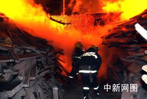 據(jù)處置現(xiàn)場火災(zāi)的一名消防人員介紹,零點(diǎn)58分,消防官兵距離火場2公里處,就發(fā)現(xiàn)前方火光沖天,熊熊的烈焰映紅了半邊天空。到場后,發(fā)現(xiàn)整個木材加工廠已是一片火海,火勢呈猛烈燃燒階段,火焰高達(dá)五、六米,正向四周迅速蔓延。在火區(qū)東、南、西側(cè)全部是木材,堆積成垛,肆慮的火魔不時伸出長長的火舌向吞噬周圍的木材。