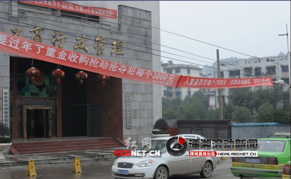 2月7日上午,網(wǎng)友“鬼都怕反手”從張家界公眾論壇轉(zhuǎn)載到紅網(wǎng)論壇一個(gè)爆料帖,附帶兩張張家界工商行政管理局門口的照片,稱南莊坪辦事處掛出打擊兩搶一盜的標(biāo)語(yǔ),明碼標(biāo)價(jià)收購(gòu)疑犯,像個(gè)商業(yè)廣告,有失莊重,且并不雅觀,同時(shí)建議永定區(qū)政府、區(qū)政法委、區(qū)公安局嚴(yán)肅查處,盡早更正該標(biāo)語(yǔ),以避免由此產(chǎn)生的不良影響,以正視聽。