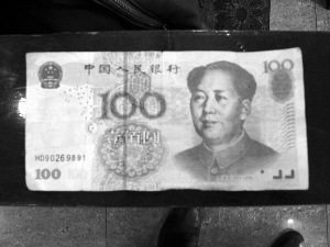 該飯店常務(wù)總經(jīng)理孫某說,結(jié)賬時(shí),大過年的,那張假錢他們就認(rèn)了,可是他們下到吧臺(tái)就開砸,把吧臺(tái)上的驗(yàn)鈔機(jī)、黃色裝飾物都給推到地上摔壞了,菜單票子給扯了,盆景樹弄折了,不銹鋼垃圾桶弄癟了,合計(jì)損失近萬(wàn)元。飯店方表示,要向砸飯店的顧客索賠被損壞的物品。記者看到,收銀員拿出一張HD90號(hào)碼打頭的百元假幣。