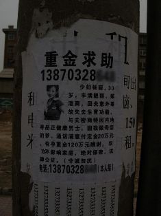 一張小廣告的內(nèi)容為:“《重金求子》性感高貴美少婦,王娜,28歲,嫁香港富商,丈夫因意 外致殘無生育能力,為了傳承家業(yè)和維護(hù)家族形象,經(jīng)夫婦合議,特來尋誠意健康男士圓夢,親談滿意,即赴你處(本人單獨(dú)與你秘密約見,不影響家庭),事成之后另有重謝!甭(lián)系電話為15180392xxx