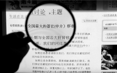 劉某某稱,去年3月,他正在一籌莫展之時(shí),通過(guò)QQ認(rèn)識(shí)了一個(gè)叫阿陽(yáng)的人。阿陽(yáng)稱可以幫他供養(yǎng)照看那些想賣器官的“供體”,他于是與阿陽(yáng)取得了聯(lián)系。4月下旬,劉某某來(lái)到河南,將幾名“供體”集中安置在河南一個(gè)地方,并交給阿陽(yáng)5000元,讓他負(fù)責(zé)供養(yǎng)照看這些“供體”。4月底,劉某某再次讓其中一名劉姓同鄉(xiāng)趕到河南,幫助阿陽(yáng)供養(yǎng)這些人。另外一名劉姓老鄉(xiāng)幫他打理北京的事務(wù),負(fù)責(zé)帶“供體”體檢等工作。