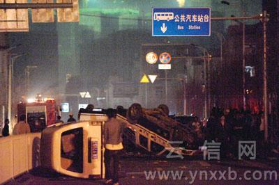 昨晚10時許,記者接到熱線電話稱,昆明北倉村大量群眾和城管隊員發(fā)生沖突。隨后,記者趕到位于北市區(qū)銀河大道旁北倉村事發(fā)現(xiàn)場時,多輛警車及城管的車停放在周圍。數(shù)百人圍著一輛微型貨車大叫“打人的城管人員就在車里”“兇手出來……”隨后,警察拉起了警戒線。不時有石塊、磚塊從人群中飛出,砸在微型貨車上,F(xiàn)場警察試圖制止但沒有效果。記者從一名官方人士處得知,昨晚7時許城管在執(zhí)法時導致一名老人受傷,但在民眾的傳言中,變成了“城管打死人”,于是導致了大范圍沖突事件發(fā)生。