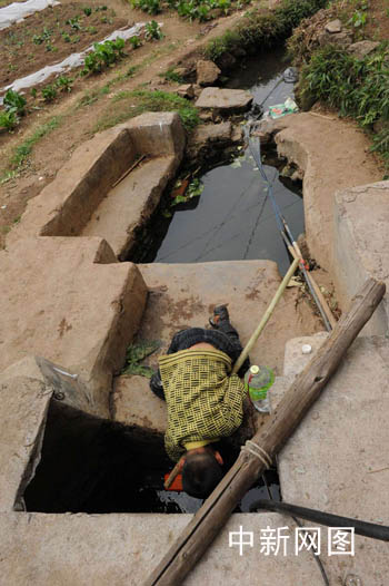 小劉凱告訴記者,受持續(xù)干旱缺水影響,他到村莊到遠(yuǎn)處取水已經(jīng)有一周時(shí)間了。由于供村里食用的水源在慢慢減少,每天中午放學(xué)后,劉凱都要擔(dān)著自己的“水桶”到遠(yuǎn)地“打水”,往返需要近半個(gè)多小時(shí)。據(jù)記者上前仔細(xì)察看,小劉凱取水之地作為村里為數(shù)不多的水源之一,渾濁的水面難以見(jiàn)底,水源質(zhì)量令人擔(dān)憂(yōu)。