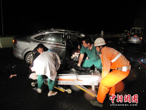 當天晚上21時20分,北海市消防官兵接警到達位于北鐵收費站往鐵山港方向500米處的事故現(xiàn)場后,見一輛車牌號為滬J86981的福特轎車橫擺在公路中間,車頭破碎不堪,車體頂部面目全非。在距離該車10米左右,一輛車牌號為桂E36186的力帆轎車亦直擺在公路邊上,車頭和車體也存在不同程度的破損。同時公路上還灑滿了零零星星的玻璃碎片和車體殘片,地上躺著被甩出車外二男一女已當場死亡。而兩車的駕駛員分別被困在駕駛室,動彈不得。