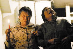 昨天晚上9點(diǎn)45分,死者張某的家人們依然留在樓道內(nèi),把點(diǎn)燃的蠟燭安放在6樓至1樓間的走道上。家人們說,晚上把蠟燭點(diǎn)在樓道上,是想讓逝者“平安下樓”。