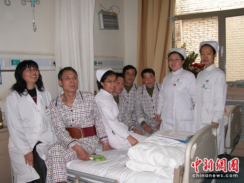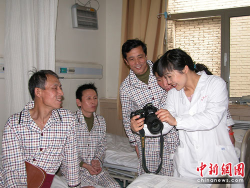 中新網(wǎng)4月11日電(聶晶梅 )在此間醫(yī)務(wù)人員日夜精心護理治療中,60名王家?guī)X獲救工友正在康復(fù)中。今天,在山西醫(yī)科大學(xué)第一醫(yī)院綜合科1病室里,工友們在與醫(yī)護人員合影。