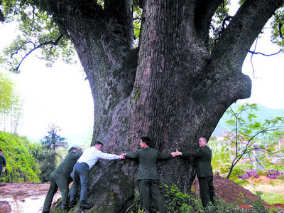 昨日,炎陵縣三河鎮(zhèn)境內(nèi)發(fā)現(xiàn)一棵胸圍超過(guò)10米的特大罕見古樟樹。該樹位于炎陵縣三河鎮(zhèn)石鼓村華山組,正在修建的衡茶吉鐵路繞樹而過(guò)。此古樟樹的樹干樹根都是實(shí)心,沒有蟲蛀。樹根往上大約2米左右分出5根巨大分枝,樹高達(dá)25米左右。整個(gè)古樟向四周延伸后占地近2畝。經(jīng)初步測(cè)量,樹圍最大處達(dá)到12米左右,8個(gè)成年人都合抱不過(guò)來(lái)。