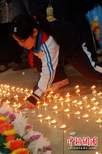 中新網(wǎng)武漢4月21日電 (徐金波 張芹 周剛)4月21日在青海玉樹發(fā)生地震后的第七天,武漢社會各界以各種形式沉痛悼念地震中遇難的同胞,并以各種形式伸出援助之手。