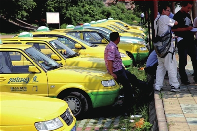 24日下午,東莞虎門威遠炮臺附近的一處空曠停車場,數(shù)十輛“黃的”整齊地停放在一起。的哥老黃接受采訪時說,他們是東莞市公共的士有限公司的司機,全公司在虎門營運的車輛約有200輛,當天全部閑放在虎門空曠地帶“趴窩”。原因是,從18日開始,虎門交通分局派出幾名社會人士充當稽查人員,對出租車進行明察暗訪,幾天內(nèi),東莞公共的士有限公司因不打表被罰的車輛就達30多輛!昂芏喽际潜蝗苏T導(dǎo)才沒有打表的!彼緳C們認為,交通部門此“暗訪”其實就是“釣魚”執(zhí)法。24日下午,東莞市交通局虎門分局門口擠滿了前去辦理處罰手續(xù)的出租車司機。