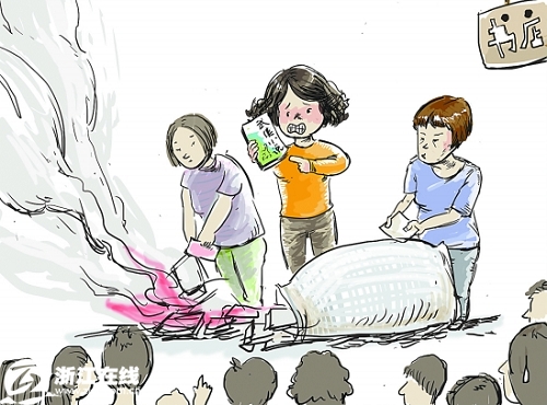 店主看到了過來阻攔,雙方發(fā)生了爭執(zhí)。很快,警察來了。百官派出所的金警官向記者證實,當時雙方的情緒都很激動。說起燒書,家長說,這實在是無奈之舉,“這樣的書不應(yīng)該在校門口賣,影響孩子的學習”。而店主則稱,他們是借給大人看的,這樣燒書影響他們的生意。