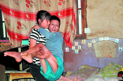 劉楨原本有個還算幸福的家庭,可在當(dāng)年的一場礦難中,作為礦工的劉中心被壓斷了脊椎,腰椎受損,神經(jīng)受到破壞,從此落下了半身不遂,大小便失禁,生活不能自理。一年之后,其妻子因不能忍受貧寒改嫁他鄉(xiāng)。那一年劉楨才5歲,家庭所有的生活重?fù)?dān)全部壓在了她稚嫩的肩上。