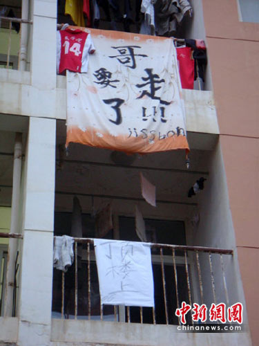 原來,湖南農(nóng)業(yè)大學一位臨近畢業(yè)的大四學生別出心裁地把“哥要走了”的“吶喊”寫在被子上,并懸掛于陽臺上,樓下現(xiàn)實版“跟帖”——“頂樓上”,被網(wǎng)友戲稱為“被子哥”。一時間該圖片在國內(nèi)某知名社交網(wǎng)站迅速躥紅,被網(wǎng)友廣泛分享“瘋”傳。
