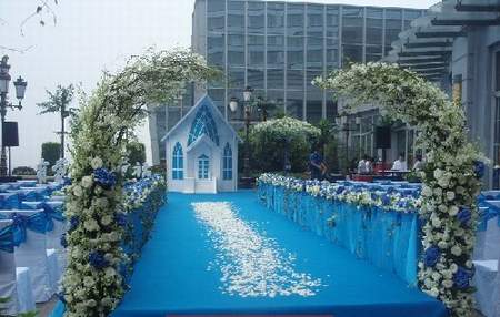 16午12時,在某大酒店,一個微縮版的水晶教堂,擺上了婚禮舞臺;槎Y承辦方負責人馬先生說,婚禮的布景,花了20多萬元。
