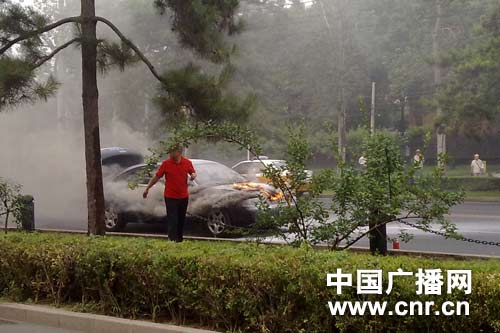 今天下午5點(diǎn)20分左右,一輛掛有北京牌照的奧迪小轎車(chē)在三里河主路上起火燃燒,記者初步斷定為車(chē)輛自燃。在現(xiàn)場(chǎng)記者還看到發(fā)動(dòng)機(jī)引擎蓋內(nèi)不斷有火苗和濃煙冒出,交警正在維護(hù)交通秩序和向旁邊的車(chē)輛借助滅火器。車(chē)輛大概燃燒了15分鐘,隨后消防車(chē)輛趕到徹底將余火撲面。截止記者發(fā)稿時(shí),現(xiàn)場(chǎng)未出現(xiàn)人員傷亡。(記者李志勇)