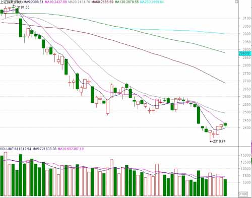 近期弱反彈行情回補(bǔ)了前期跳空缺口,由于缺少成交量的有效配合,因此短期反彈幅度較為有限,2450點(diǎn)附近構(gòu)成一定壓力,預(yù)計(jì)要出現(xiàn)再次震蕩反復(fù),二次回探驗(yàn)證前期低點(diǎn)的有效性。目前技術(shù)組合還沒(méi)有出現(xiàn)反轉(zhuǎn)跡象,也不能確定2319點(diǎn)為最低點(diǎn),仍需要等待農(nóng)行上市之后的表現(xiàn),但轉(zhuǎn)機(jī)已在逐步臨近。