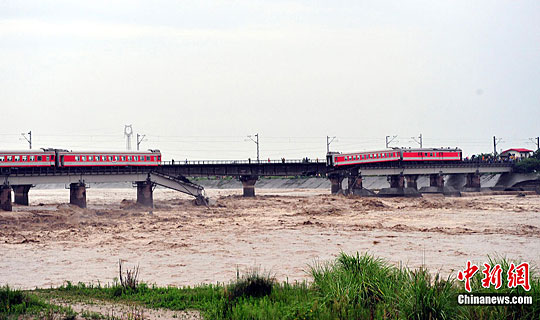 中新網(wǎng)成都8月19日電(楊杰 周迪迪 田甜)19日下午15時(shí)20分,從西安開(kāi)往昆明的K165次列車兩節(jié)車廂在四川廣漢市境內(nèi)掉進(jìn)石亭江,被洪水沖出200米遠(yuǎn)。經(jīng)過(guò)緊張的營(yíng)救,車上人員已全部安全轉(zhuǎn)移,未出現(xiàn)人員傷亡。安源 攝