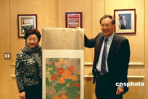 率領(lǐng)“文化中國·四海同春”藝術(shù)團(tuán)正在紐約訪問的中國國務(wù)院僑辦主任李海峰,于當(dāng)?shù)貢r(shí)間1月29日參觀了位于紐約的美國威特國際集團(tuán)大樓。中新社發(fā) 魏晞 攝