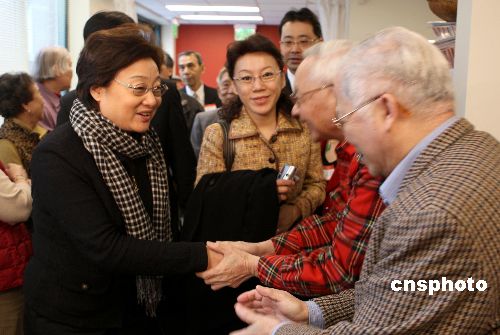 當(dāng)?shù)貢r間2月2日,率領(lǐng)“文化中國·四海同春”藝術(shù)團(tuán)正在美國訪問的國務(wù)院僑辦主任李海峰,走訪波士頓地區(qū)著名社團(tuán)華人前進(jìn)會。中新社發(fā) 魏晞 攝