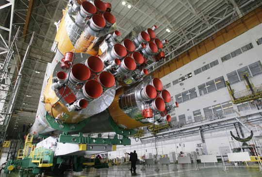 3月23日,在哈薩克斯坦的拜科努爾航天中心,專家們正在為俄羅斯“聯(lián)盟TMA-14”載人飛船的起飛做著準備工作。按計劃,國際空間站第19期長期考察組成員將于26日乘坐“聯(lián)盟TMA-14”載人飛船奔赴國際空間站。