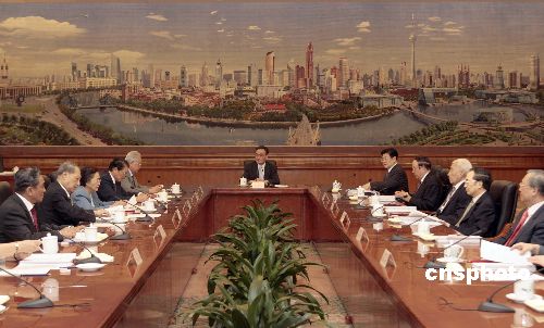 | 六月十八日,十屆全國人大常委會第六十一次委員長會議在北京人民大會堂舉行,全國人大常委會委員長吳邦國主持會議。會議決定十屆全國人大常委會第二十八次會議于六月二十四日至二十九日舉行,根據委員長會議建議的議程,此次常委會會議將繼續(xù)審議勞動合同法草案、反壟斷法草案、突發(fā)事件應對法草案、就業(yè)促進法草案,首次審議民事訴訟法修正草案、節(jié)約能源法修訂草案、律師法修訂草案。中新社發(fā) 盛佳鵬 攝