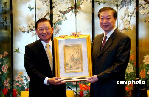 一月十日午間,江蘇省長(zhǎng)羅志軍在南京會(huì)見(jiàn)臺(tái)灣;鶗(huì)董事長(zhǎng)江丙坤,以及海協(xié)會(huì)與;鶗(huì)聯(lián)合參訪團(tuán)一行。會(huì)見(jiàn)中,羅志軍希望臺(tái)商堅(jiān)定在江蘇投資創(chuàng)業(yè)的信心。中新社發(fā) 丁梅 攝