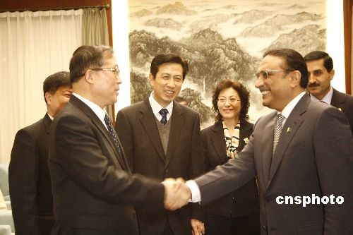 1月20日至23日,巴基斯坦總統(tǒng)扎爾達里將先后訪問湖北和上海,考察中國水利、農(nóng)業(yè)、金融等領域發(fā)展情況。圖為湖北省省長李鴻忠會見扎爾達里總統(tǒng)。中新社發(fā) 艾啟平 攝