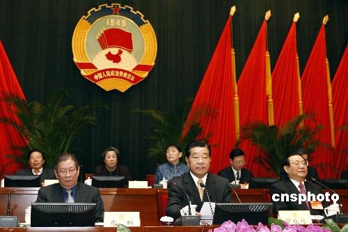 2月25日,政協(xié)第十一屆全國委員會常務(wù)委員會第四次會議在北京開幕,全國政協(xié)主席賈慶林出席并主持會議。會議將聽取和討論有關(guān)即將召開的全國政協(xié)十一屆二次會議事項、審議通過有關(guān)議程和報告等。中新社發(fā) 盛佳鵬 攝
