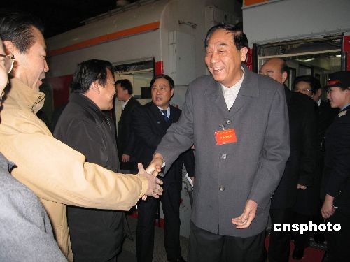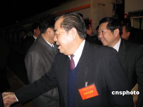 3月2日6:02分,來自河南的全國人大代表抵達北京,成為首批抵京參加十一屆全國人大二次會議的京外代表。圖為在站臺受到熱烈歡迎的河南省全國人大代表。中新社發(fā) 石雨 攝