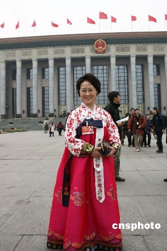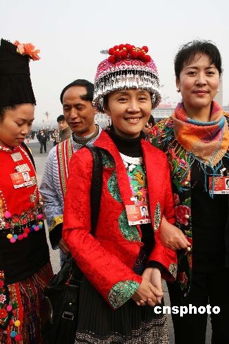 3月3日,全國(guó)政協(xié)十一屆二次會(huì)議在北京人民大會(huì)堂開幕,少數(shù)民族政協(xié)委員在人民大會(huì)堂前留影。中新社發(fā) 金立冬 攝