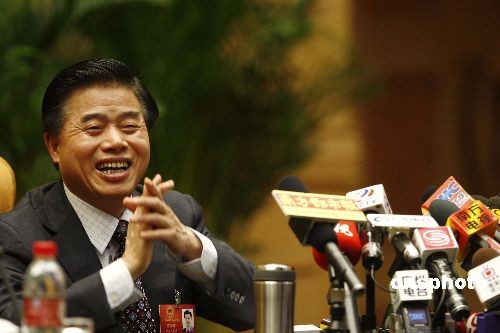 3月6日,出席十一屆全國人大二次會(huì)議的、廣東省省長黃華華在北京舉行記者招待會(huì),接受中外記者的集體采訪。中新社發(fā) 盛佳鵬 攝