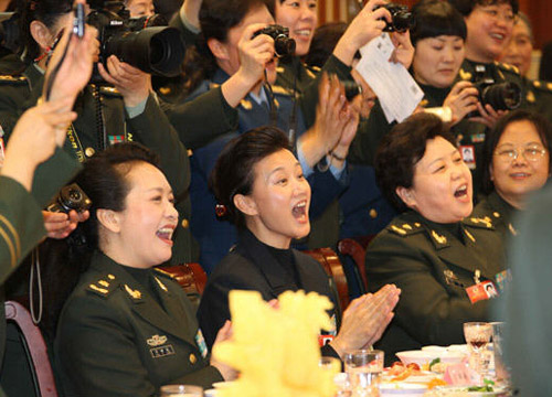 3月7日晚,出席十一屆全國人大二次會議和全國政協(xié)十一屆二次會議的解放軍女代表、女委員舉行聯(lián)歡,喜迎三八國際勞動?jì)D女節(jié)。 王建民 攝