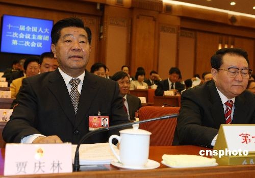 3月9日上午,十一屆全國人大二次會議在北京人民大會堂舉行第二次主席團會議,主席團成員賈慶林、李長春出席。中新社發(fā) 任晨鳴 攝