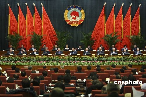 3月11日,政協(xié)第十一屆全國(guó)委員會(huì)常務(wù)委員會(huì)第五次會(huì)議在北京舉行,全國(guó)政協(xié)主席賈慶林出席并主持會(huì)議。會(huì)議通過(guò)政協(xié)第十一屆全國(guó)委員會(huì)第二次會(huì)議關(guān)于常務(wù)委員會(huì)工作報(bào)告的決議(草案),審議通過(guò)政協(xié)第十一屆全國(guó)委員會(huì)提案委員會(huì)關(guān)于政協(xié)十一屆二次會(huì)議提案審查情況的報(bào)告(草案),通過(guò)政協(xié)第十一屆全國(guó)委員會(huì)第二次會(huì)議政治決議(草案)。中新社發(fā) 盛佳鵬 攝