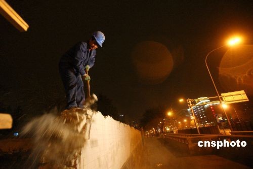 3月20日23時左右,長安街道路大修工程正式啟動。據(jù)悉,這是十余年來長安街首次大修,預(yù)計8月30日完工。伴隨此次道路大修,將同步進(jìn)行交通工程、綠化整治和公交優(yōu)化,并對建國門立交橋進(jìn)行橋面翻新和結(jié)構(gòu)加固,對沿線多處地下通道出入口進(jìn)行延長調(diào)整,實(shí)現(xiàn)長安街復(fù)興門至建國門路段五上五下雙向十車道的規(guī)劃。為最大限度減少施工對城市交通及市民的影響,施工主要集中在夜間進(jìn)行,白天交通不受影響。中新社發(fā) 富田 攝