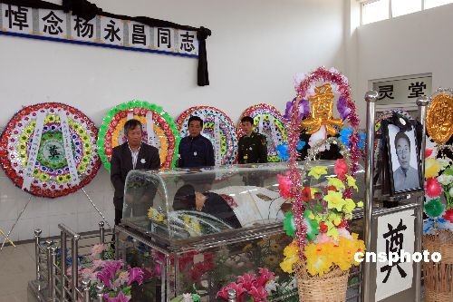 4月22日,“雪龍?zhí)枴睒O地科考船失事直升機(jī)失蹤機(jī)組人員楊永昌追悼會(huì)在上海長(zhǎng)興島殯儀館舉行,與楊永昌生前一同到極地從事科考的隊(duì)友專(zhuān)程為楊永昌送行。4月12日,“雪龍?zhí)枴睒O地科考船租用的艦載直升機(jī)在完成科考任務(wù)后返回駐地時(shí)失事墜海。4名機(jī)組人員隨機(jī)落水,其中3人獲救。4月20日,經(jīng)過(guò)近8天的搜尋,失蹤機(jī)組人員楊永昌的遺體在長(zhǎng)江口水域振華港機(jī)0號(hào)碼頭附近被發(fā)現(xiàn)并打撈上岸。中新社發(fā) 潘索菲 攝